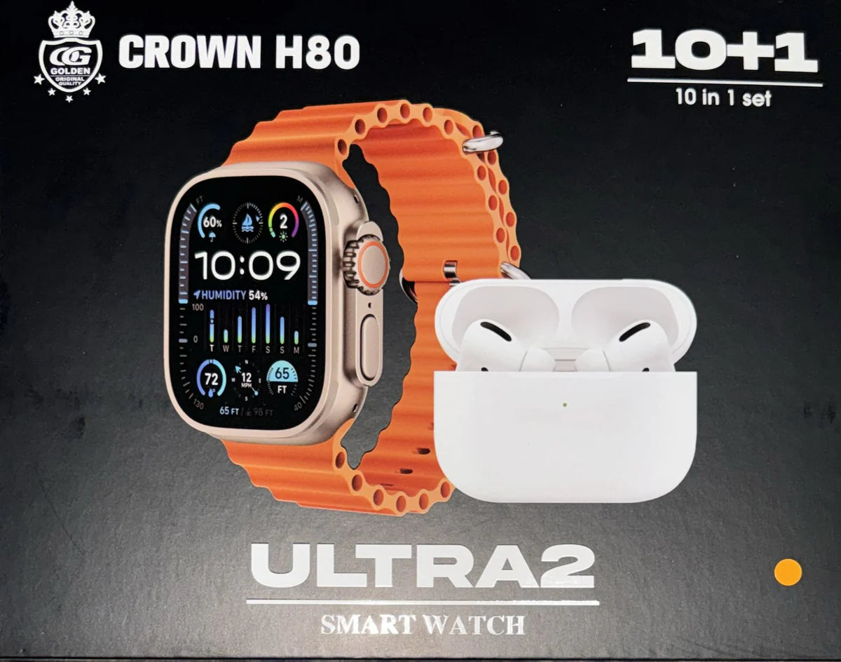 Experience the perfect fusion of style and technology with the CROWN H80 10+1 Smartwatch, now bundled with premium wireless earbuds. This advanced smartwatch keeps you connected, active, and entertained—all from your wrist. With a sleek bezel-less display, Bluetooth calling, and multi-sport tracking, it’s the ultimate smart accessory for your lifestyle.
